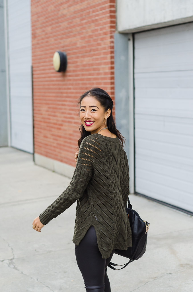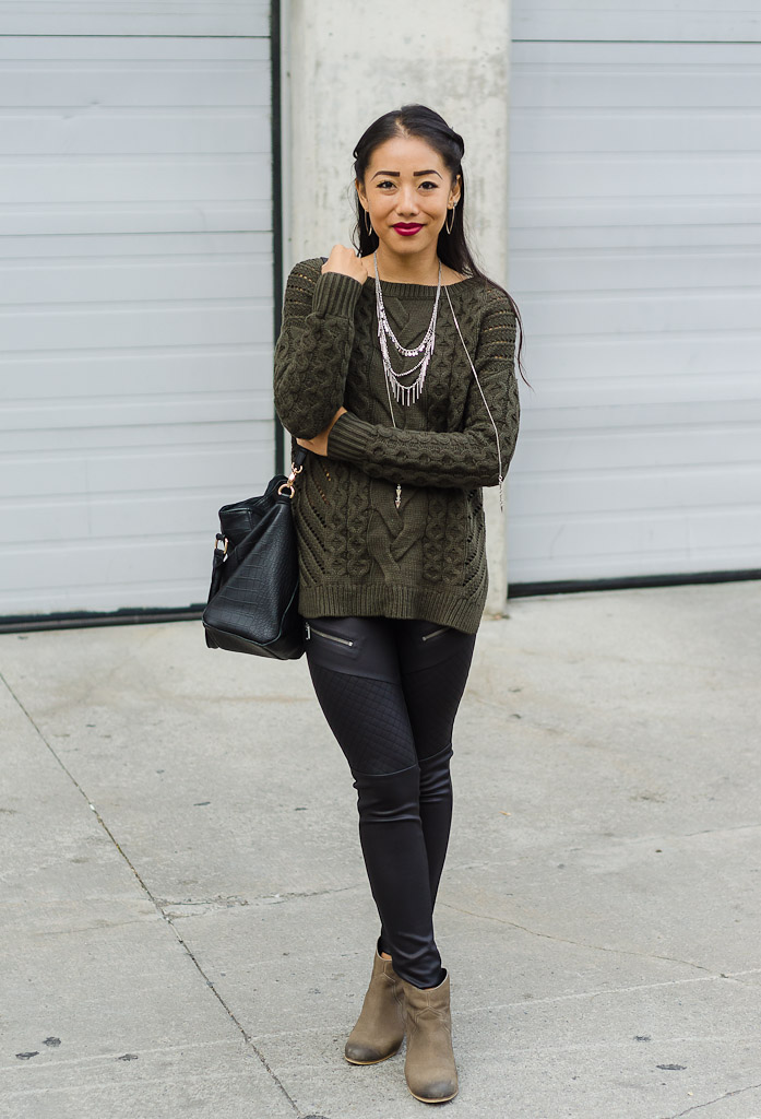 Mother Nature’s sneaky tendencies aside, I love fall. And my uniform as of late, has been chunky, oversized sweaters paired with badass pleather leggings. Tis the season of everything cozy, and what woman doesn’t love throwing on an effortless, comfy knit?