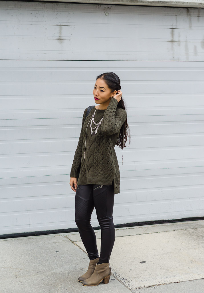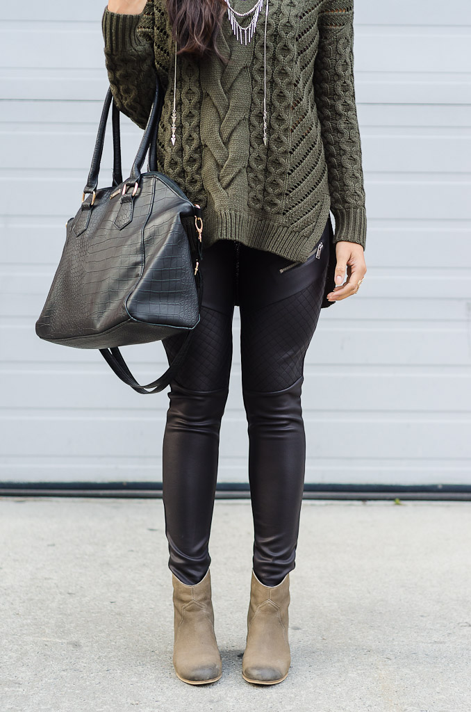 what she’s wearing | Express sweater | Express leggings | Express necklace | BP booties | Giant Tiger purse